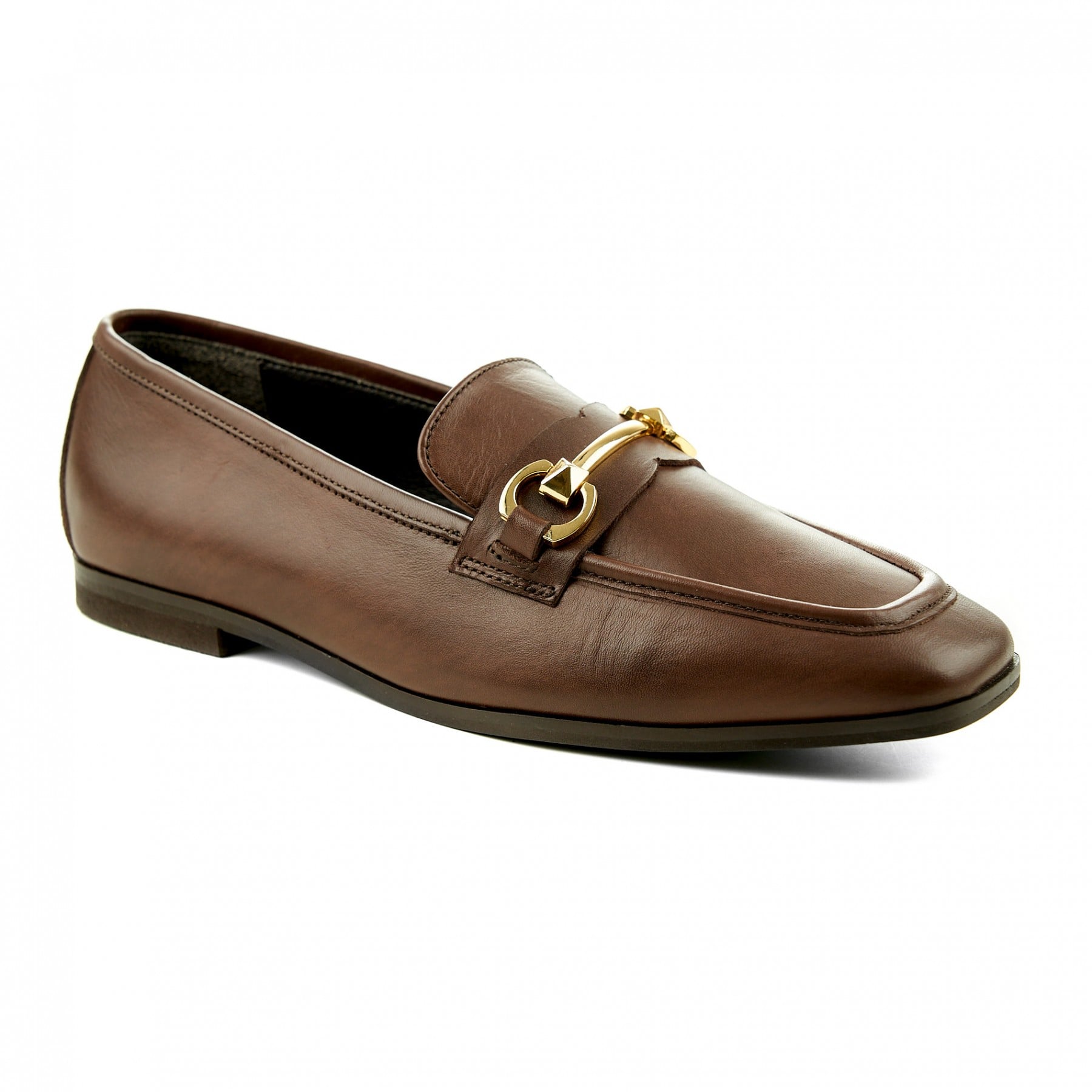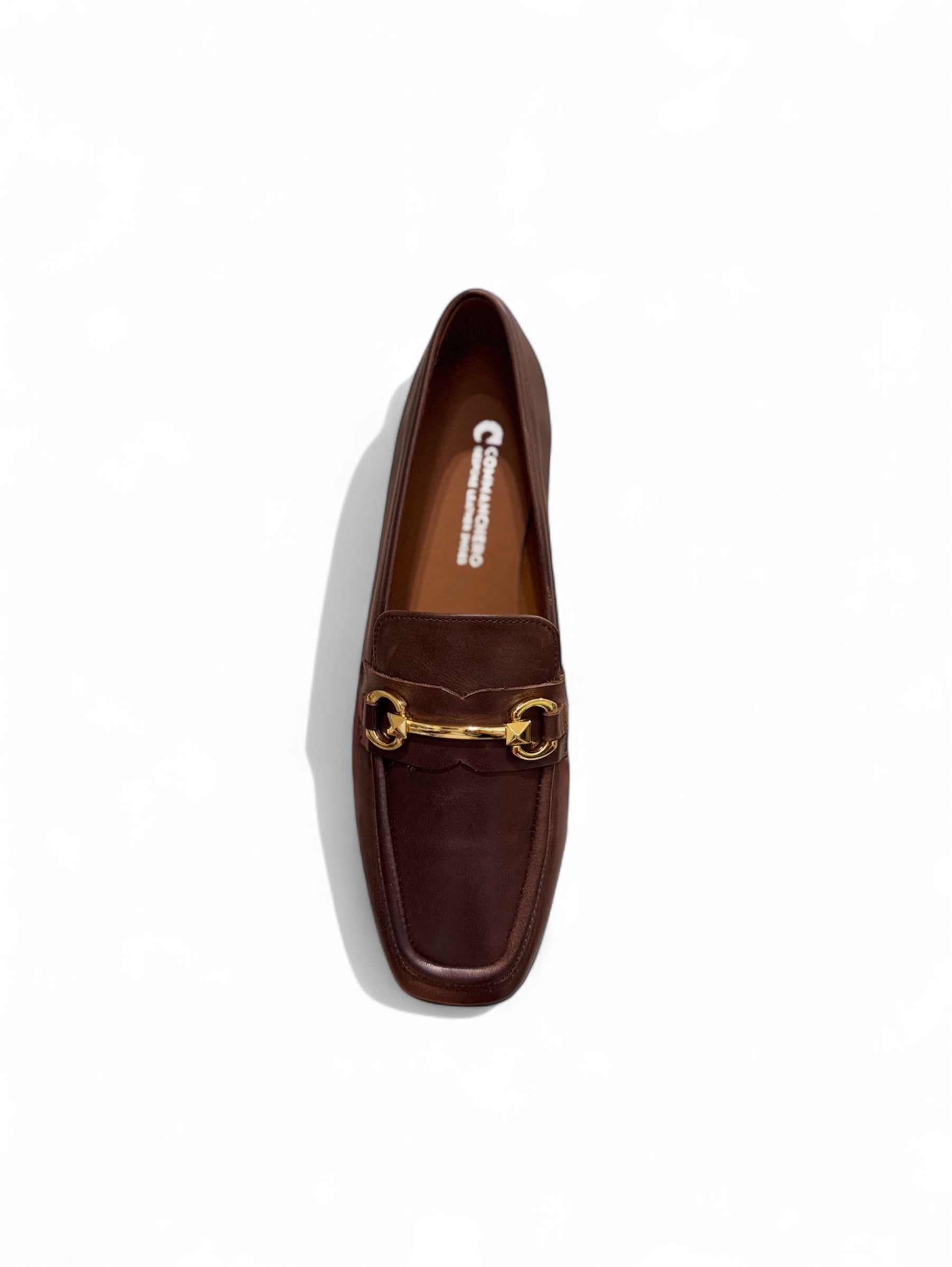 Καφέ δερμάτινο μοκασίνι με διακοσμητικό, άνετη φόρμα που αγκαλιάζει το πόδι,