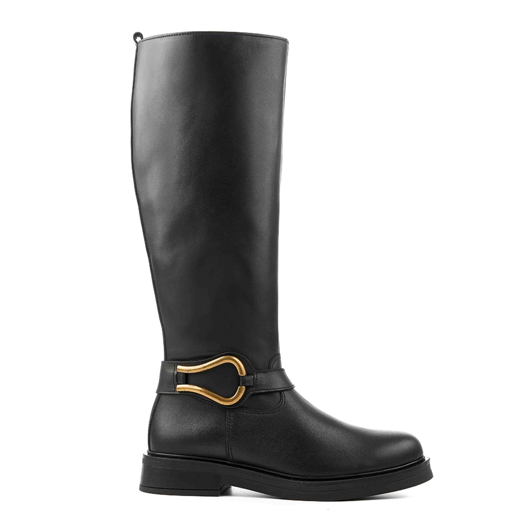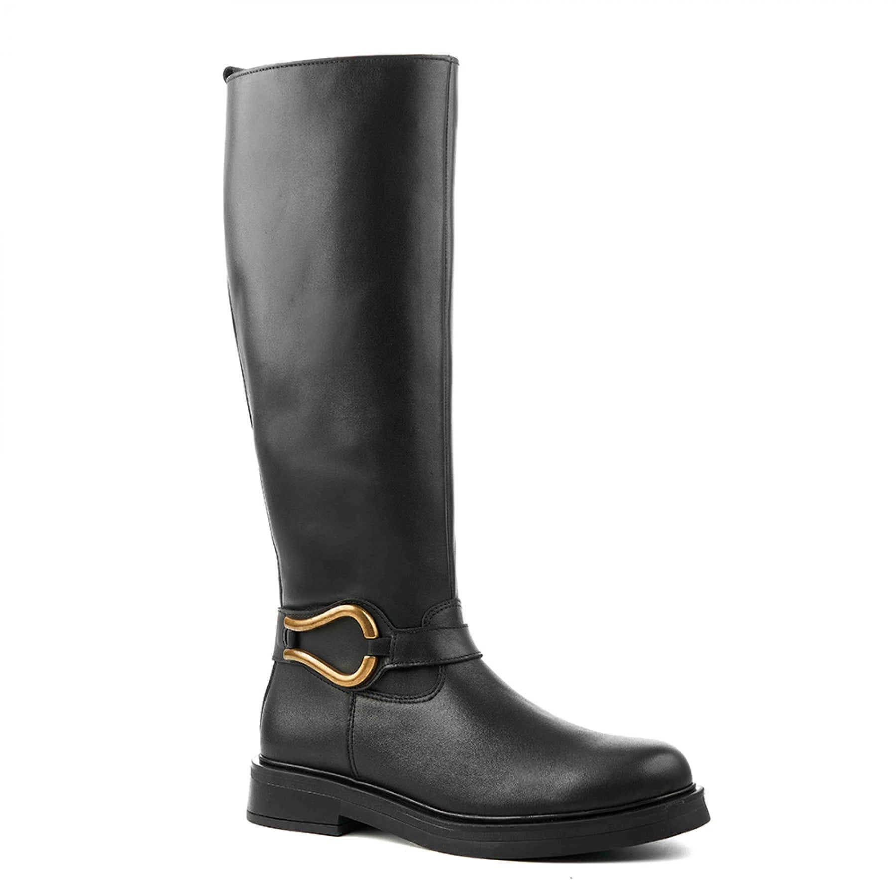 Δερμάτινη μπότα ιππασίας άνετη για όλες τις ώρες της ημέρας με διακοσμητικό στο πλάι & εσωτερικό φερμουάρ.