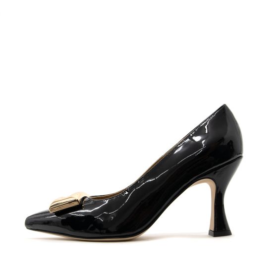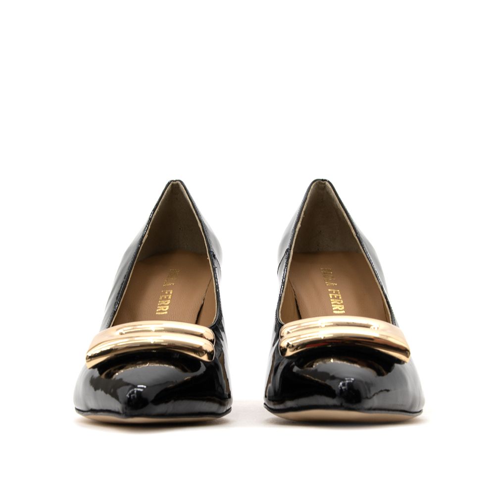 Γυναικεία γόβα από δέρμα λουστρίνι της Paola Ferri με χρυσή αγκράφα