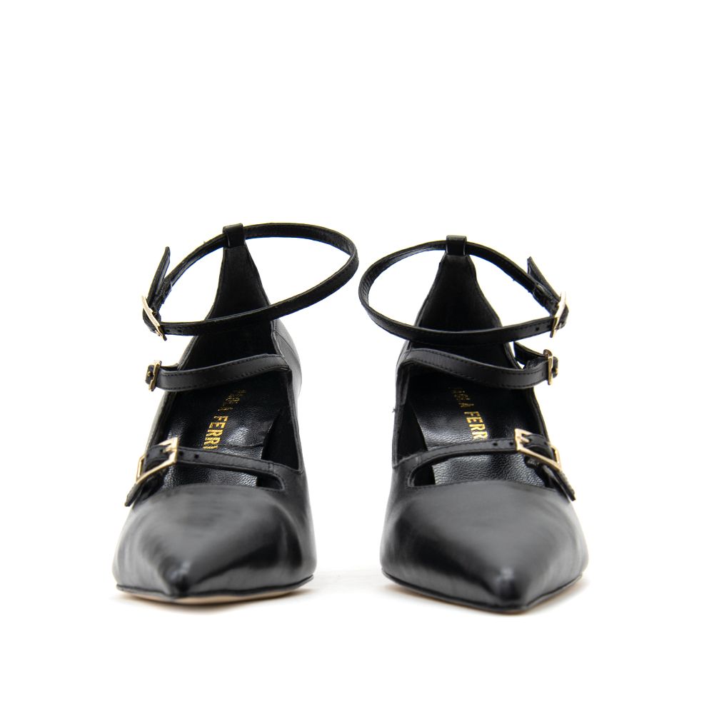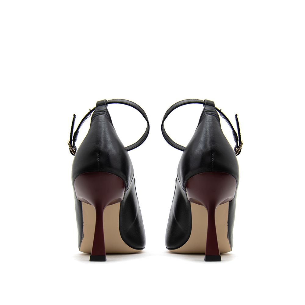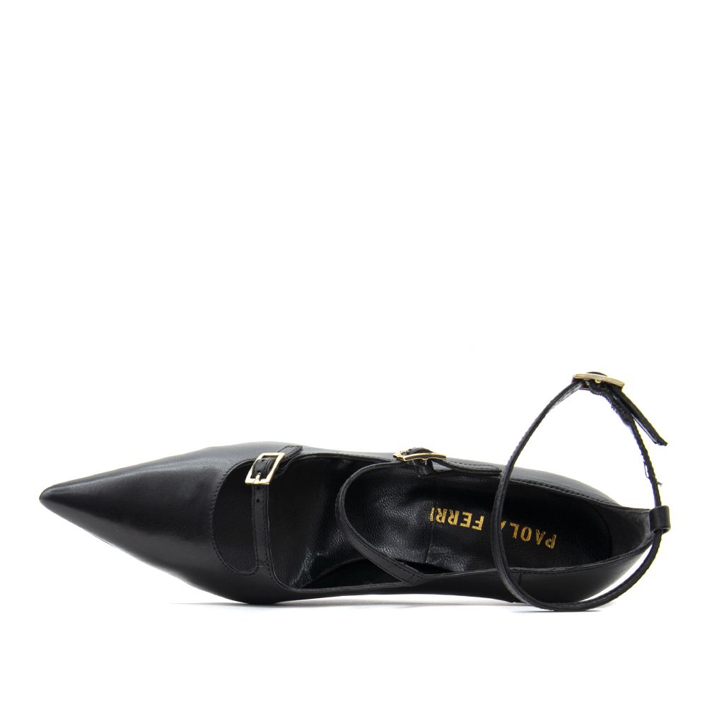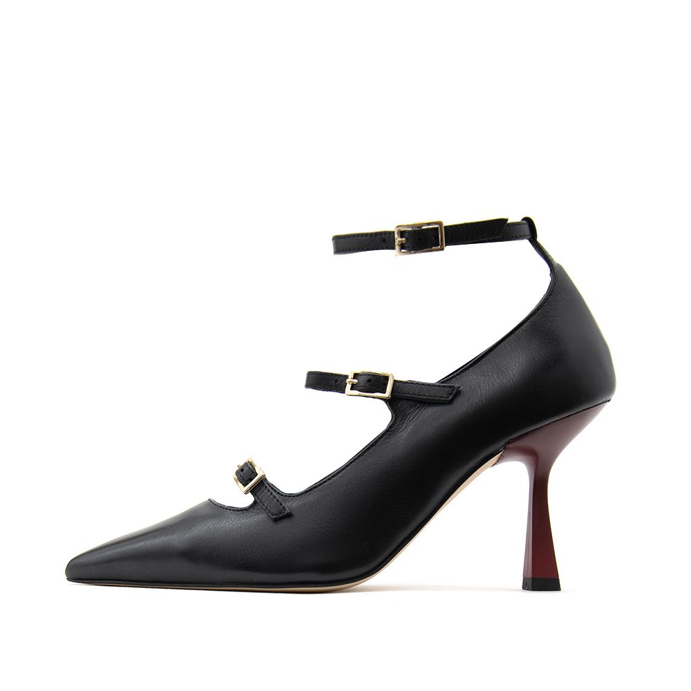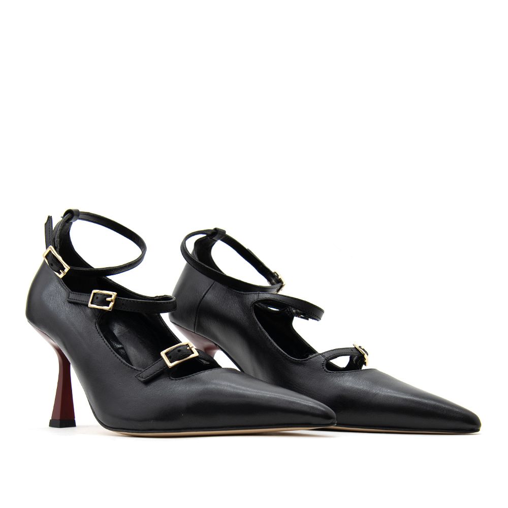 Γυναικείες δερμάτινες Mary Jane γόβες μαύρες με ψηλό τακούνι κόκκινο της Paola Ferri .